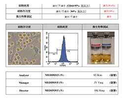 干细胞状态(细胞生存、无菌状态等)由MEDIPOST直接监督并发行细胞实验成绩表