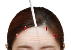 由于眉毛下垂导致睁眼时为了提起沉重下垂的眉毛,要使用额头肌肉。切开额头内侧的皮肤后,利用内视镜直接确认神经和肌肉的位置,去除眉间形成皱纹的肌肉后提拉额头软部组织,将其固定在骨头上的手术.