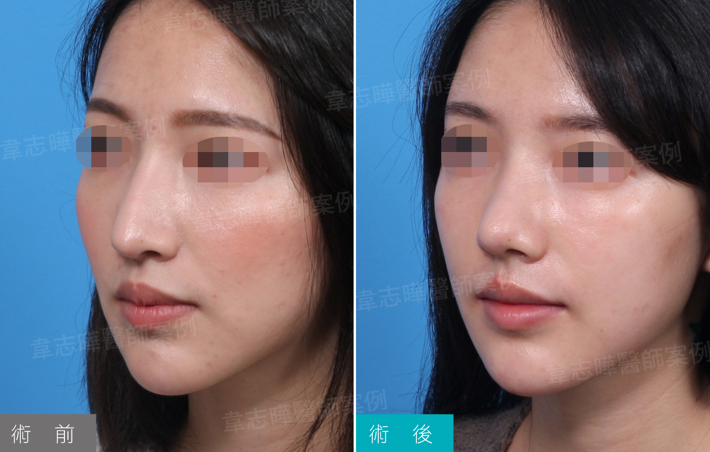 *使用肋軟骨墊鼻樑、撐起鼻頭,可做精緻鼻部雕刻。 |