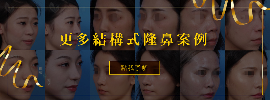 結構式隆鼻強調鼻外觀與功能同時改善,考量每個人先天基礎後天條件狀況,以空間結構平衡原理,打造出一個穩固和諧的鼻子型態,並符合自身臉型的自然美鼻。對於歪鼻、朝天鼻、駝峰鼻、鷹勾鼻、馬鞍鼻、鼻頭鼻翼肥大、鼻樑塌陷,都可以利用此術式得到改善。