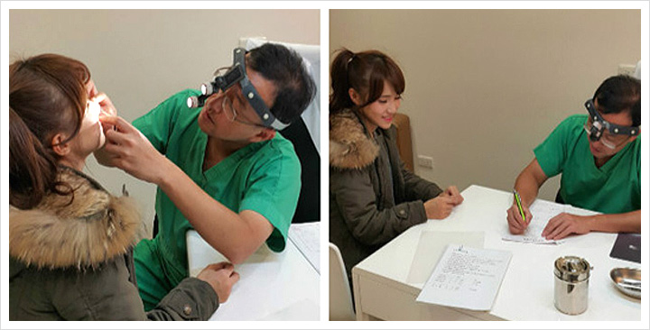 - 手術採『舒眠麻醉』,術前醫師會於鼻子畫上記號,確定手術進行的位置