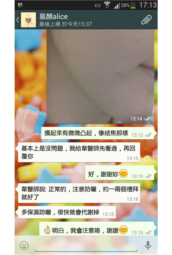 療程完成後第二天, catcat便回港了~ 不過, catcat卻於回港不久後, 發現嘴邊長了兩個啡印... 於是, 便立即透過whatsapp聯絡慕顏的客服Alice, 並傳照片給她看... 很快, catcat就收到Alice的回覆, 得知是正常現象, catcat也就放心下來~ 再過了約3-4天, 嘴邊的啡印便完全代謝掉咯~