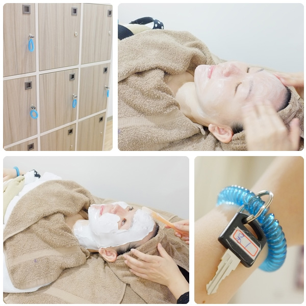 這裡設置了多個儲物櫃, 讓客人可於療程前把個人隨身物品安心存放好; 又提供浴袍予客人更換, 避免在療程過程中會把衣服弄髒~