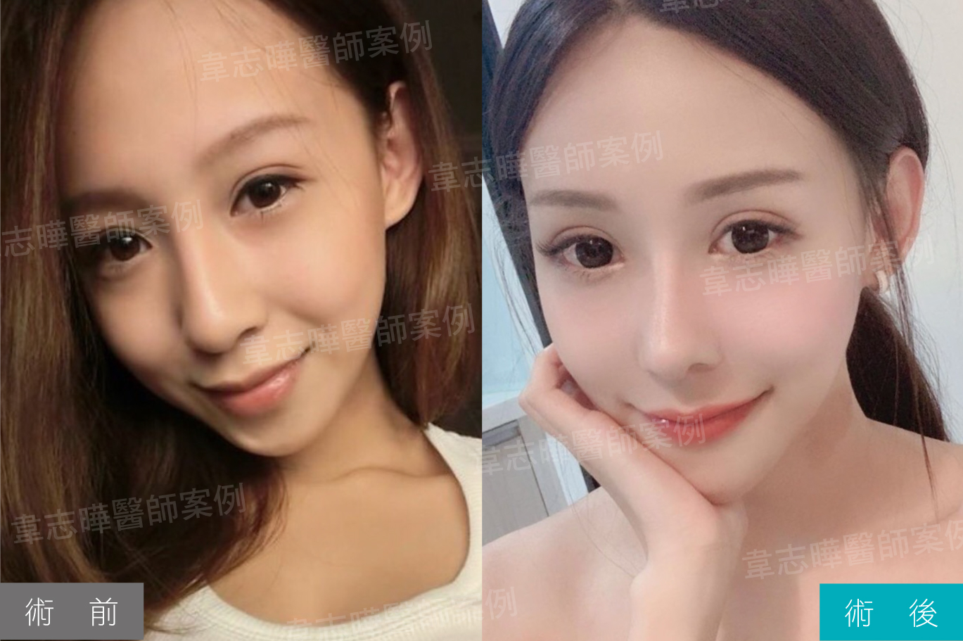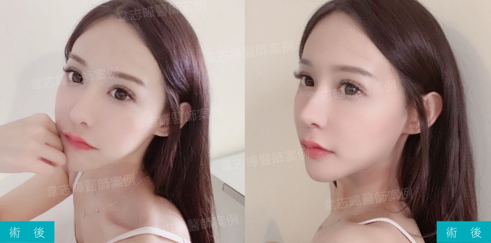 「七年前跟朋友一起去隆鼻,是簡單的L型矽膠隆鼻,到後面鼻孔有點一大一小很嚴重,矽膠有點浮動,很怕之後會穿出,所以上網研究了很多年,後來才找到韋醫師。 韋醫師的美感偏向自然型的,因為那種太直的鼻子看起來會太假,很怕走出去大家都長得一模一樣。這次的手術我很滿意,改善原本矽膠的問題,鼻頭想要再小一點,也都有達到我想要的感覺…..」