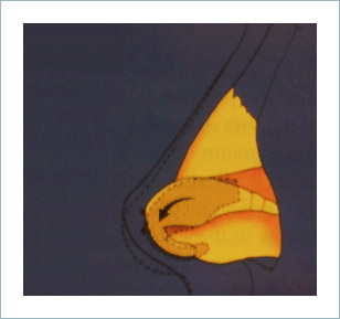 朝天鼻矯正手術主要是要改變鼻頭下外軟骨上仰的角度,經由鼻中膈軟骨尾端延長,改變鼻下外軟骨旋轉角度,並調整鼻尖與鼻樑高度、達到矯正朝天鼻的目的。手術示意圖如下: