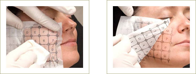 *以75%酒精將Thermage 專利的標記格線轉印在治療部位