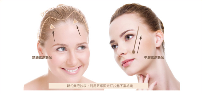 - 內視鏡拉皮搭配八爪釘/五爪釘。