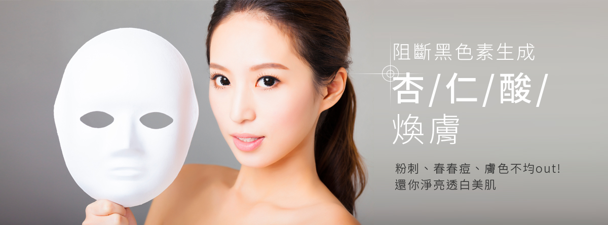 杏仁酸煥膚能有效抑制皮膚中號稱「黑色素製造工廠」的兩個元素:「酪氨酸脢」與「酪氨酸」,阻斷黑色素生成,比其他換膚成份都更為有效。