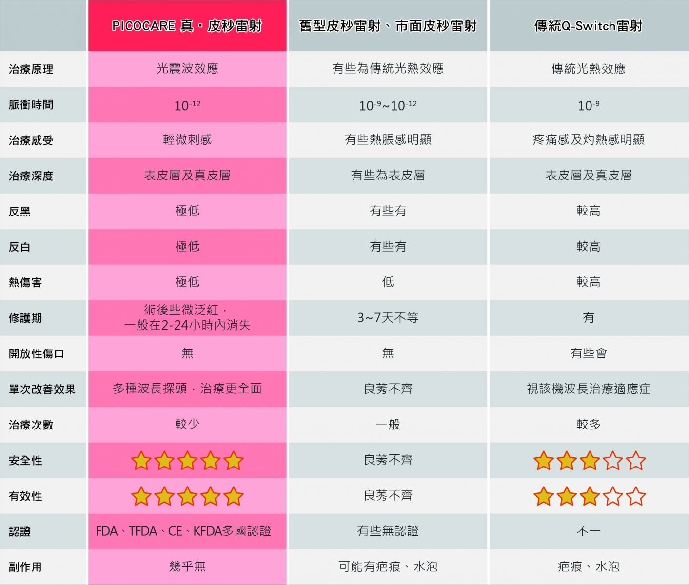 因此PICICARE真。皮秒雷射近年通過包括FDA、KFDA、CE等多國認證,被視為新一代修復期更短、反黑機率更低、效果更好、可解決更多黑色素沈澱問題的新型雷射。
