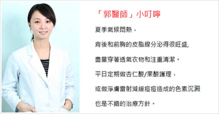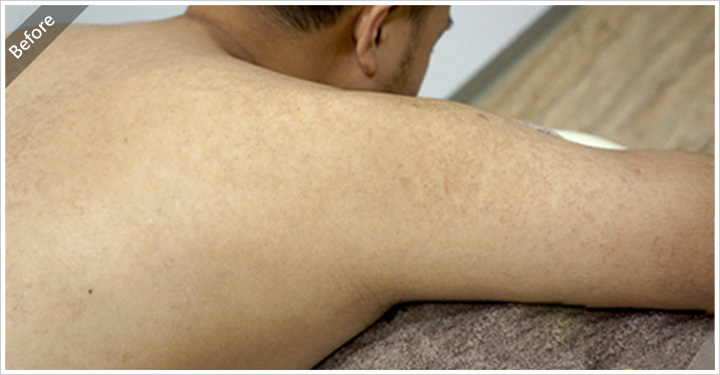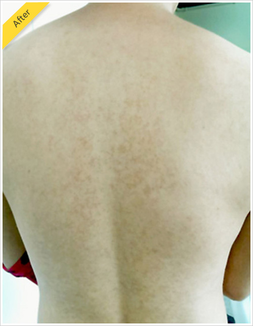 Raine在朋友的建議下, 到診所進行了一次徹頭徹尾的「果酸美背煥膚+淨膚雷射」
