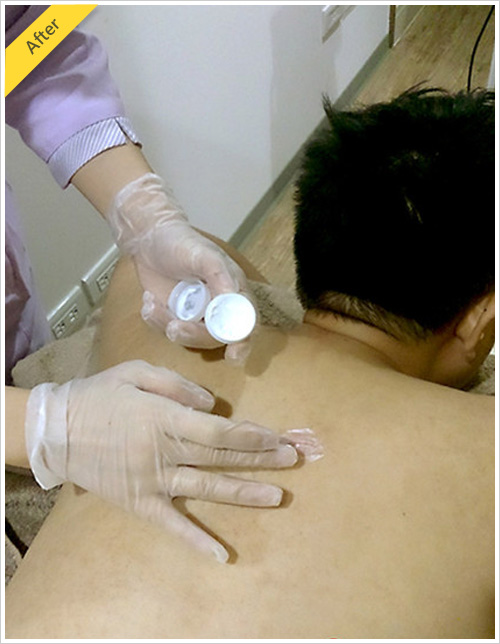 第一次的果酸美背療程,就在美容師貼心幫我擦上痘痘藥中結束啦!!背部皮膚明顯變白,背部中間這段也立即提亮有光澤 !!不過任何保養療程,需4~6次才能明顯看出效果喔 !!