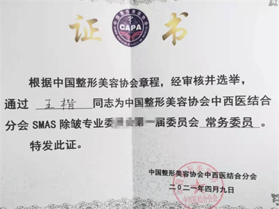 整形美容协会中西医结合分会SMAS除皱委员会常务委员