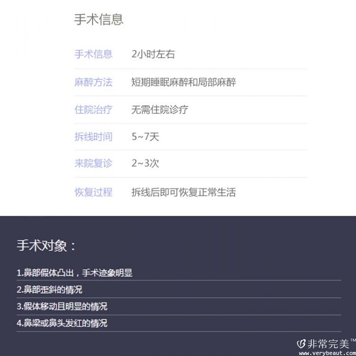 鼻部整形手术后不满意手术效果,假体过高,鼻头过尖,假体移动幅度过大,鼻部下垂, 或者发生炎症等情况都需要进行鼻部修复术。比起第一次手术,鼻部修复术难度较大,因 此尽量找手术经验丰富的专职医师进行手术,以得到良好的手术效果。