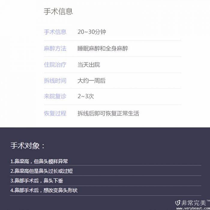 鼻头整形被称为鼻部手术之花,难度较大,并且鼻头模样决定手术效果,所以一定 要找手术经验丰富的专职医师进行手术,以提高手术满意度。