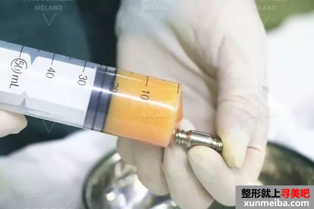 先是面部脂肪填充,进行大腿脂肪提取,上图就是取出的大腿脂肪哦,金黄金黄的很是诱人。