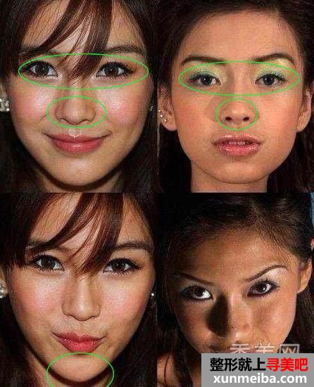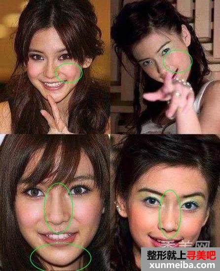 AngelaBaby的鼻梁、苹果肌、下巴: