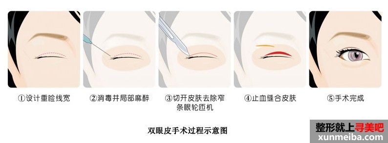 重睑术主要有以上几类,但各种类型中的变异方法很多,加在一起,不下百种。不管采用什么方法,其原理大都是一致的。在临床上要根据求术者的条件(如睑形、脸形等情况)来选择术式,不能千篇一律地运用一种方法,要因人而异人,这样做出的效果才能符合每个的情况,并突出个性、达到完美的效果。