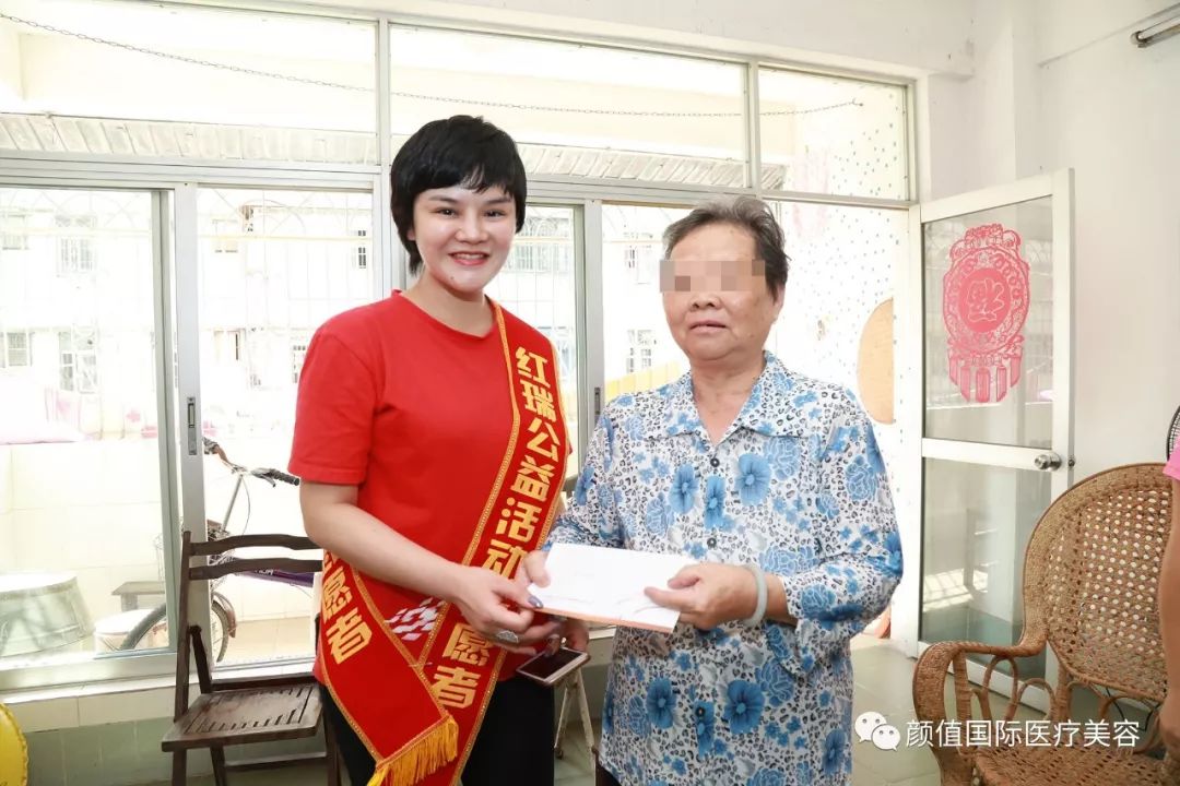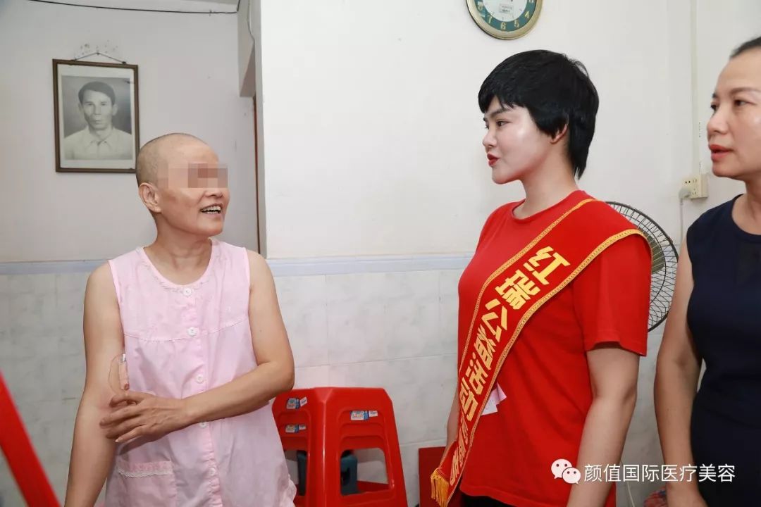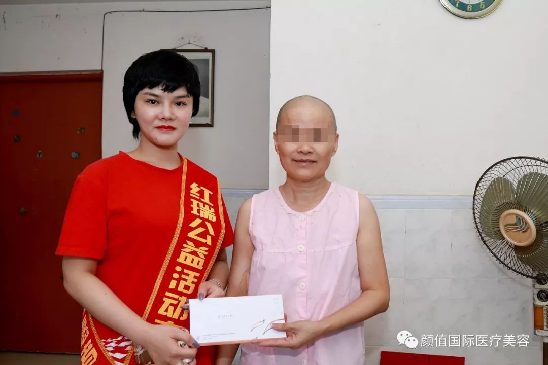 在走访慰问过程中,颜值医美总经理张丽女士以及副总经理何庭嬅女士,亲切地与患者进行交谈,并分别为她们送上了现金慰问,鼓励患者要热爱生命,树立战胜病魔的信心和勇气。