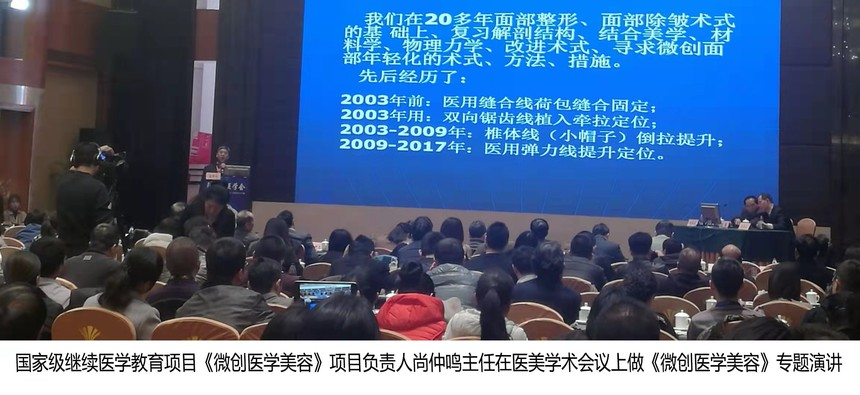 5月9号 尚氏微创面部年轻化提升定位新技术培训:国家级继续医学教育 《微创医学美容》项目负责人尚仲鸣主任深入研究、分析面部软组织松垂移位衰老现象的原因,巧妙将材料力学原理应用于面部松垂软组织的提升,研究推出了医学微创面部年轻化提升定位新技术。通过力学的计算,有效的使松垂下移的软组织恢复到年轻时的状态,且长期保持美容效果。明显效果维持十年,理论上终生有效。无需开刀即可取得提眉、提外眼角、提苹果肌、提松垂的面颊、鼻唇沟变浅、矫正歪嘴、提口角。结合注射美容、脂肪移植、射频精雕使面部年轻化的神话变成现实。为求美者提供了一种行之有效,安全可靠,美容效果长久的医疗美容项目。深受求美者欢迎。