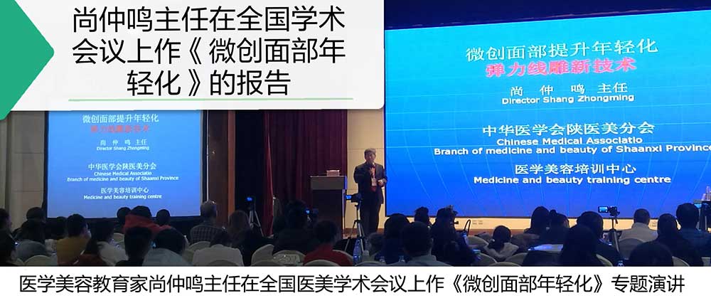 美容医学学科奠基人之一,医学美容教育家、尚仲鸣主任担任国家级继续医学教育项目《微创医学美容》项目负责人。尚仲鸣主任深入研究、分析面部软组织松垂移位衰老现象的原因,巧妙利用材料力学,提出面部软组织松垂提升的三大要素:软组织松垂部位的挂附力,提拉该部位向上的传导力、最上端所必要的铆钉固位力,推出了医学微创面部年轻化提升定位新技术。通过力学的计算,有效的使松垂下移的软组织恢复到年轻时的状态,且长期保持美容效果。明显效果维持十年,理论上终生有效。无需开刀即可取得提眉、提外眼角、提苹果肌、提松垂的面颊、鼻唇沟变浅、矫正歪嘴、提口角。结合注射美容、脂肪移植、射频精雕使面部年轻化的神话变成现实。为求美者提供了一种行之有效,安全可靠,美容效果长久的医疗美容项目。深受求美者欢迎。