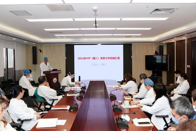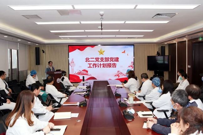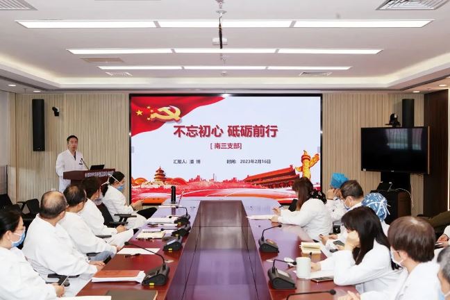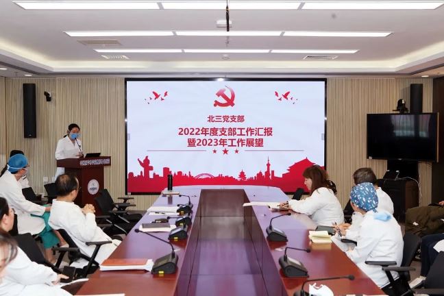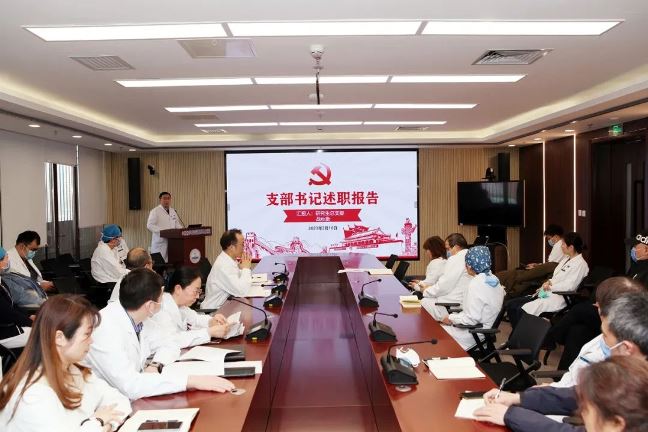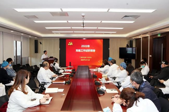 在认真听取各支部的汇报后,王宝玺书记做总结发言,并对2023年的党支部建设工作提出要求:一是继续加强理论学习力度,聚焦学习贯彻党的二十大精神、落实年度党建工作任务主题,加强对党的各项规章制度、理论政策的把握,促进业务能力和管理能力协同提升;二是继续抓紧基层党组织建设,更好地发挥支部的战斗堡垒作用,坚持以“支部建在科室上”为原则,提高党支部建设科学化制度化规范化水平;三是继续做好发展党员工作,提高在核心骨干、高知群体中发展党员的比例,永葆党组织的先进性;四是围绕医院各项中心工作,服务大局,加强党建工作与业务工作深度融合,在人才推荐、干部任用等工作中发挥积极作用,为医院“强专科、优综合”跨越式发展提供坚强的组织保证;五是坚持以党建带工建,积极推进工会组织换届选举工作,切实实现好、发挥好、调动好广大职工的积极性和创造性。