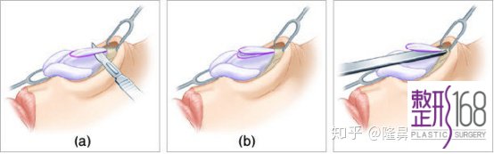 (注:对于鼻背皮肤比较薄的人,还需要在切除驼峰的部位加垫软骨以及真皮组织,避免皮肤与其下粗糙的表面粘住,导致鼻背凹凸不平,另外较大的鼻峰切除后鼻背会变平,加垫软骨或假体及真皮组织可以使鼻背顺滑,更有立体感!)