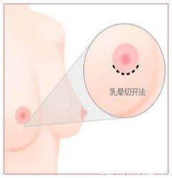 •在乳晕与皮肤处4~8CM之间作弧形切口;
