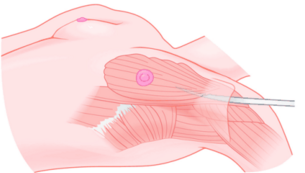 •在腋窝顶部或稍下方皮肤皱折内作2.5~3CM长切口;