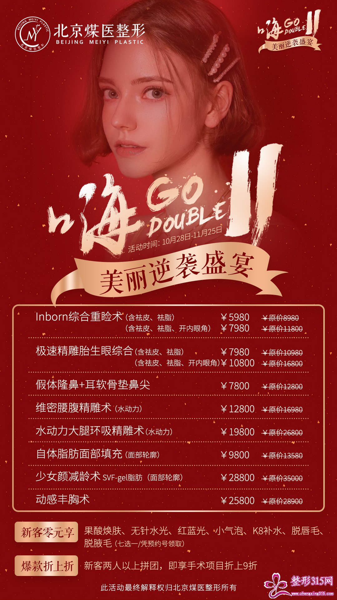 上一篇:北京地区整形医院11月份活动 下一篇:北京地区整形医院双 十一 嗨购 十一天 收藏 打印