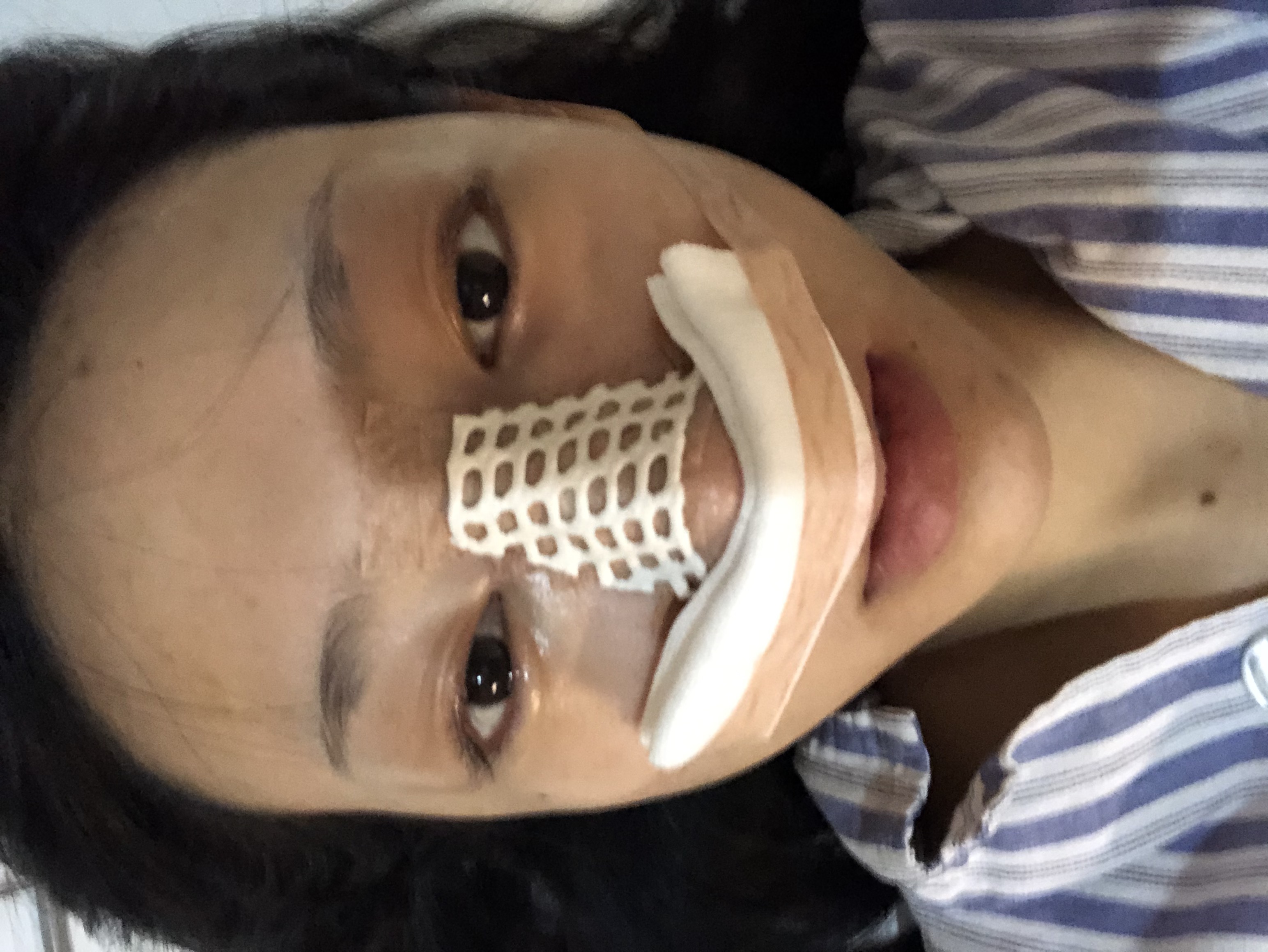整个手术下来我觉得都没有什么痛感,除了拆线之前都不能用鼻子呼吸,只能用嘴,前三天非常不适应,经常半夜被干醒喉咙很痛,喝水又呛到,除此之外也没什么感觉了,因为是在耳朵上取的骨头,耳朵会有一点轻微的肿胀感,鼻子也是一样,不过护士会每天送来冰袋让我用来冰敷,而且我除了第二天几乎都不怎么肿,查房医生都说我一点也不肿,所以术后的休息还有吃饭是非常重要的!因为我每天睡的非常多吃的也非常多,所以恢复会快一些。拆线之后因为山根还是会有牵扯,皮肤很鼓,我觉得我丑的离谱,不过从拆线开始都是一天一个样的,因为身体恢复会消肿,每天都会更好看一些,一直到第三天就已经恢复到我喜欢的形态了。