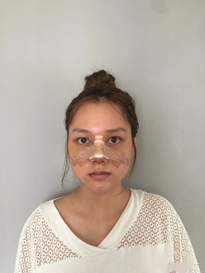 一直关注着各个平台很多小姐妹们写的自己变美日记,今天终于有勇气来写写自己的日记了,我也要记录我变美的过程。先来说说我自己的鼻子吧,可能和大多数姐妹一样,鼻梁塌,鼻头大,而且我的鼻子和我的脸配在一起还觉得鼻子短。这个照片是我术后第一天的时候,等我从病床上醒来,已经被推到了病房,脸上就像你们看到的这样包这纱布插着管子。那两天也一直住在医院,但是很好的是护士和医生都会每天来问问我的情况,还问我有没有什么不舒服的地方。感觉真的很贴心,第一天自身的感受还是有一点痛的,说话不利索,眼睛还要流眼泪。但是我就很相信,之后自己一定会变美。
