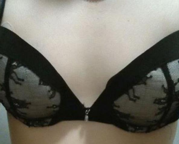 以前平坦的胸部,可以看出胸罩里是空空的,这还是后罩杯的哦,没办法,最小的也穿不了啊