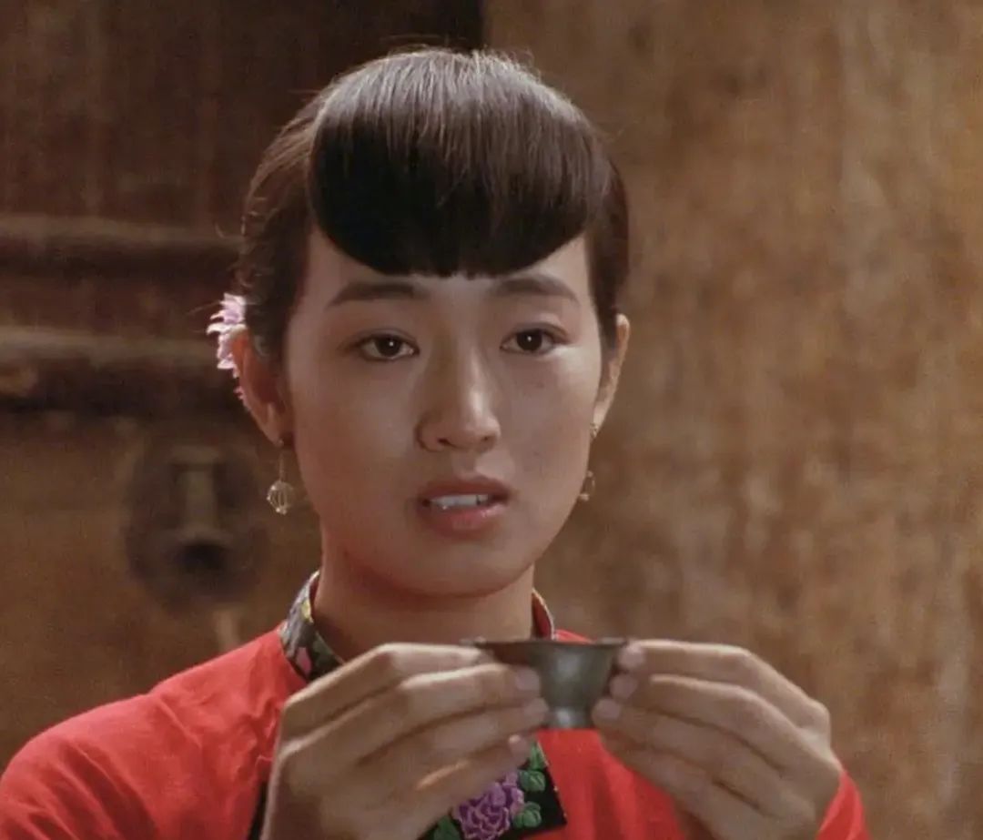 一头乌黑的头发绑成粗壮的辫子,前额的刘海虽不精致,却有种自然的美感。 据说,在开拍前,导演吴天明带着演员和摄制组去到陕北,与农民同吃同住同劳动,花费大量的时间徘徊农村的贸易市场,观察农民们的真实生活状态。 所以,才会有了这样的经典之作。 这也许才是人们心目中村花的模样。 除了电影版的村花,还有很多影视剧中的村花形象都让人过目不忘。 电影《菊豆》中的菊豆。